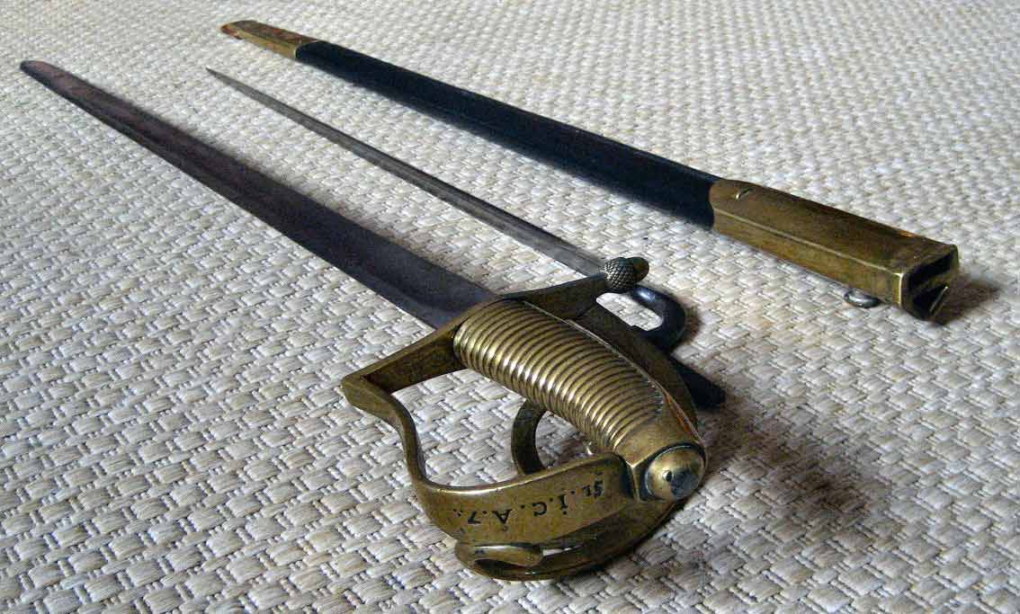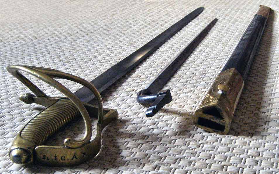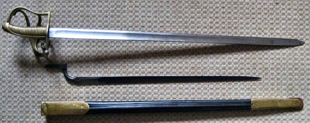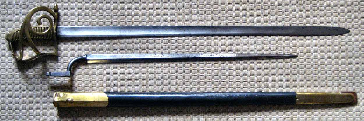 Der Degen für Unteroffiziere M 1831 mit Messingscheide ohne Bajonett-Beischeide. Vermutlich für Einsatz in den Kolonien.