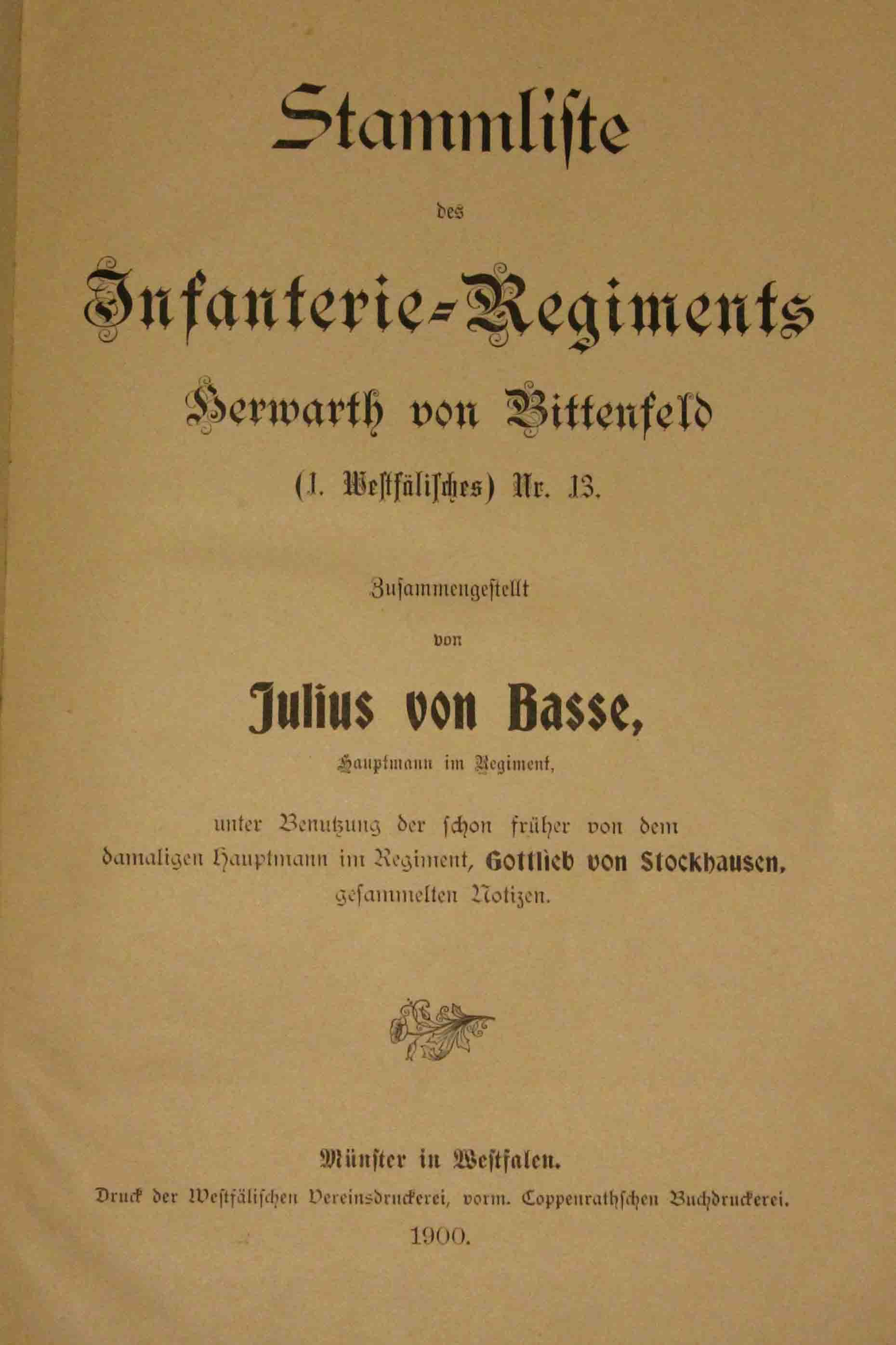 "Stammliste, eine gedruckte Übersicht der Abstammung der verschiedenen Truppenabtheilungen einer Armee, der Feldzüge, Gefechte, Belagerungen, welche jede mitgemacht hat etc."