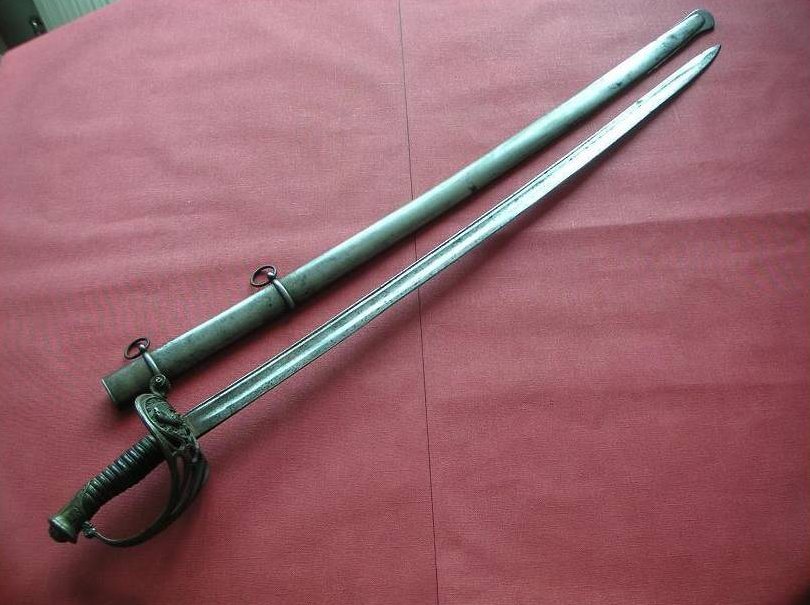 Was mich zusätzlich irritierte, ist, daß der Adler weniger heraldisch mit seinem Flügelpaar dargestellt wird, sondern nur mit seinem linken Flügel und dann auch noch mit der Blickrichtung nach links. Wobei er dann bei versorgter wie gezogener Waffe nach hinten blicken würde. Zumindest für mich ist dies eher ungewöhnlich.