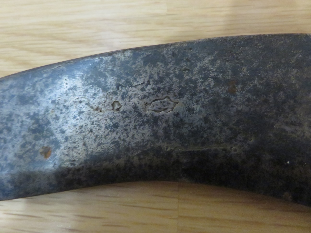 Der Griff besteht aus 2 Holzhalbschalen , die auf die Angel in kompletter Länge mit 9 Nieten aufgenietet sind