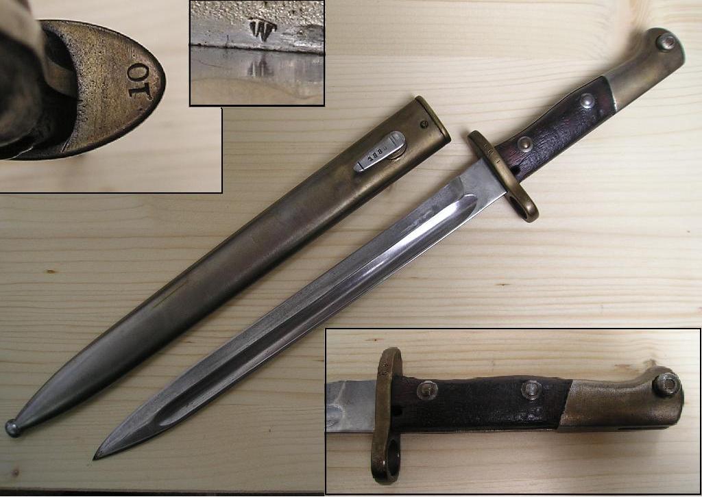 Mir ist momentan nicht ganz klar, wie der Vorbesitzer es geschafft hat, das Messing der Bürste auf das Metall des Bajonettes aufzutragen. Das war wohl eine rotierende Bürste, die beim Vorgang stark aufgedrückt wurde?