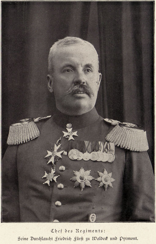 Fürst Waldeck (Seine Durchlaucht) war zunächst Chef des III. Bataillons des Infanterie-Regiments von Wittich (3. Kurhessisches) Nr. 83, seit 1913 dann Chef des gesamten Regiments.
