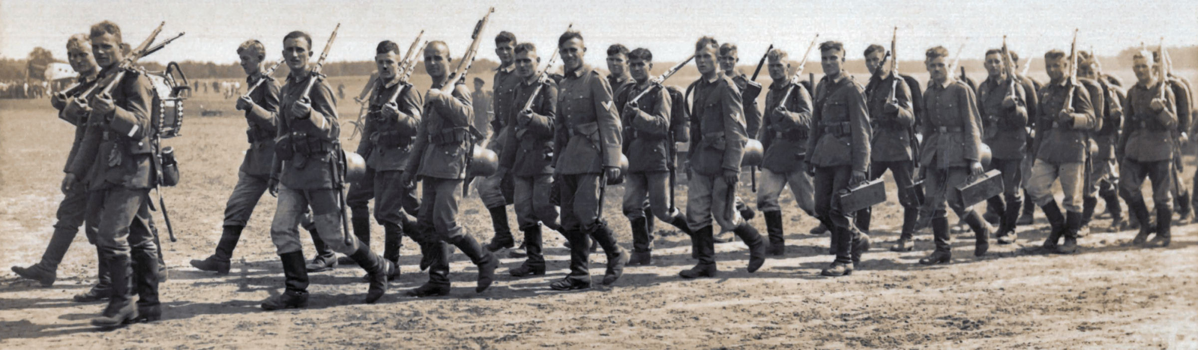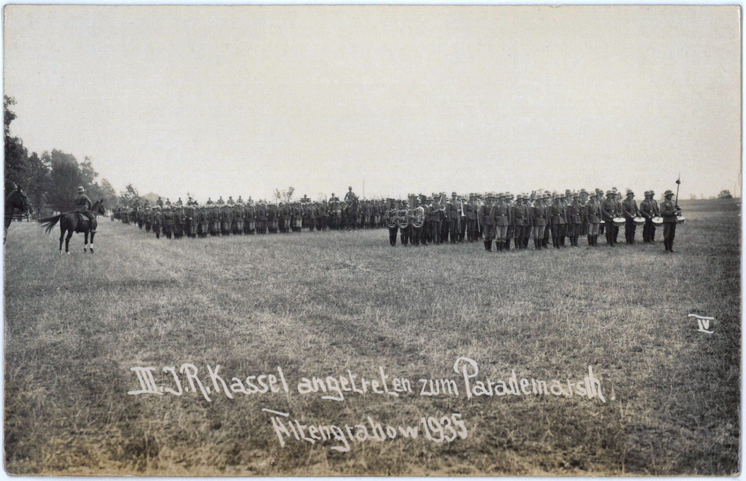 Die folgenden Fotos zeigen das III. Bataillon des "Infanterie-Regiment Kassel" gut gelaunt, mit Regimentsmusik und dem neuen Wehrmachtsadler auf der Brust, während eines Truppenübungsplatzaufenthaltes in Altengrabow 1935. Die Schützen waren mit dem Karabiner K98a ausgerüstet und jeder Zug besaß ein leichtes Maschinengewehr 08/15.