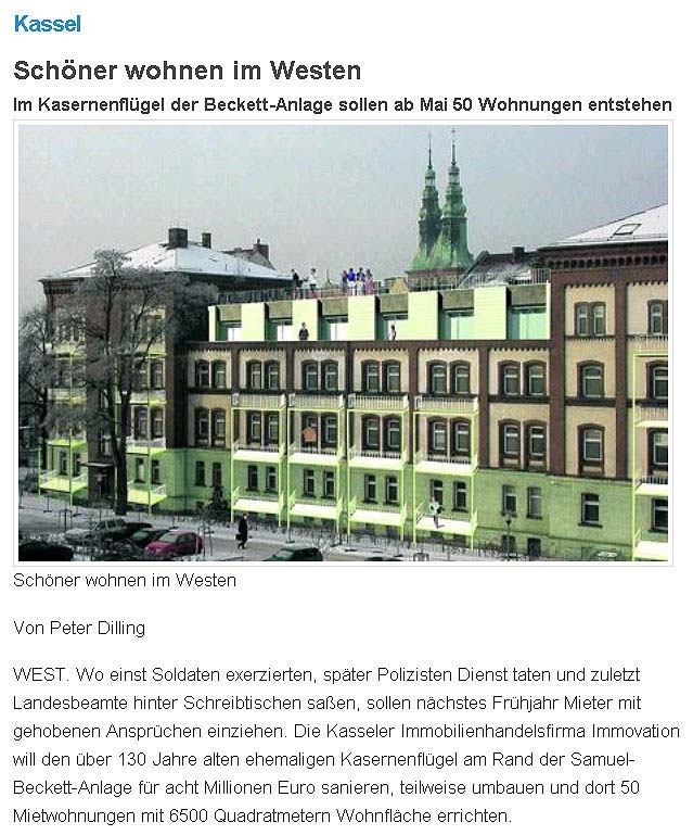 Kaserne des Infanterie-Regiments 83 - Neue Nutzungspläne - "Schöner wohnen im Westen"