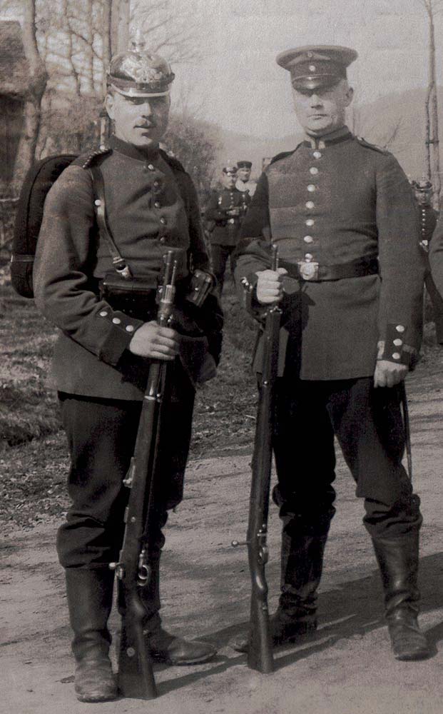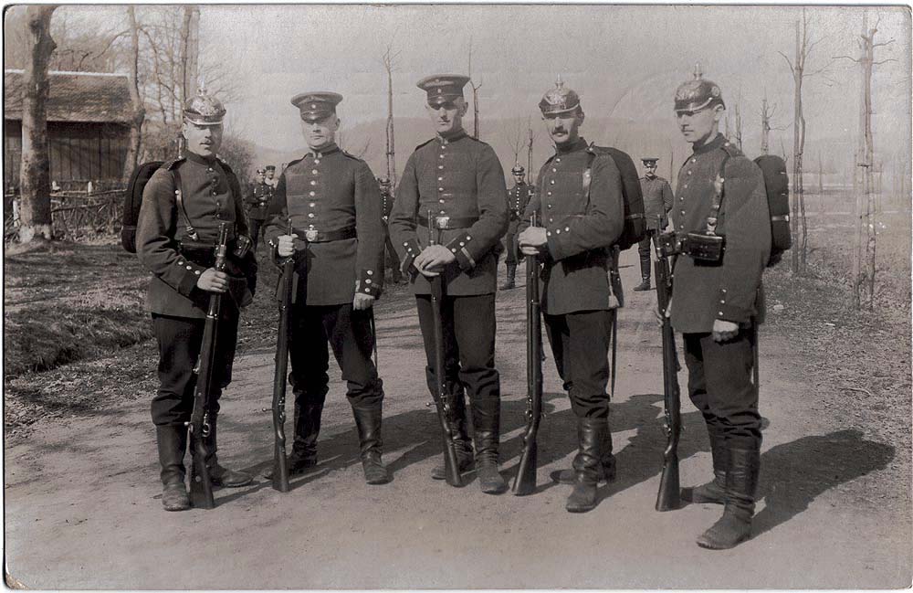83er, vom Fotografen schön "auf Lücke" gestellt, im April 1911 mit SG98 lang und Gewehr 98 mit "Lange-Visier"