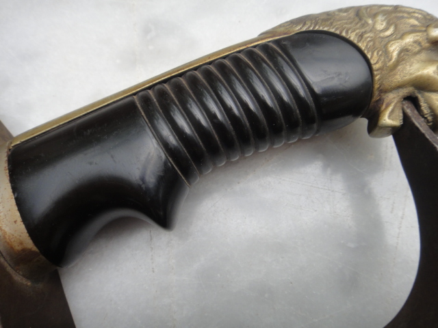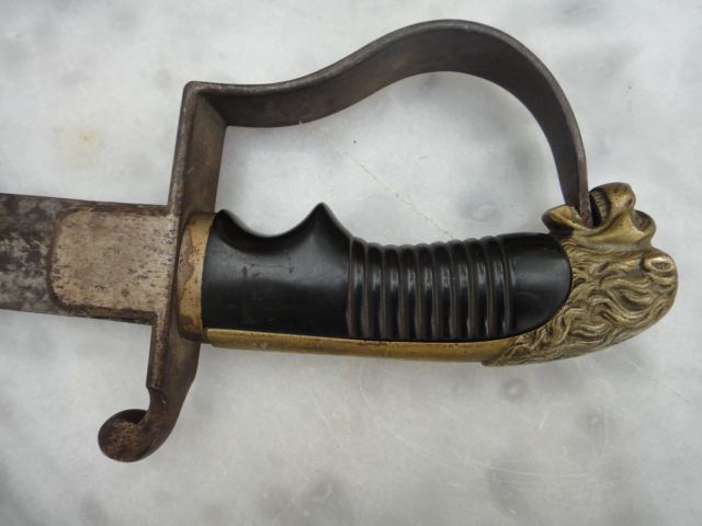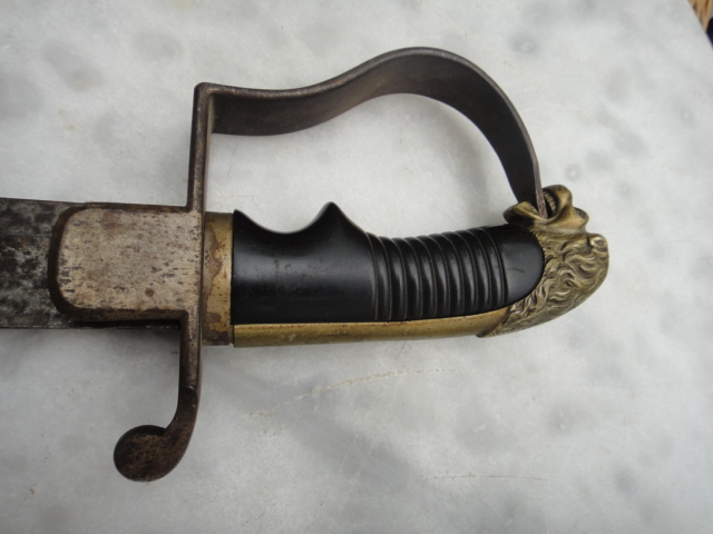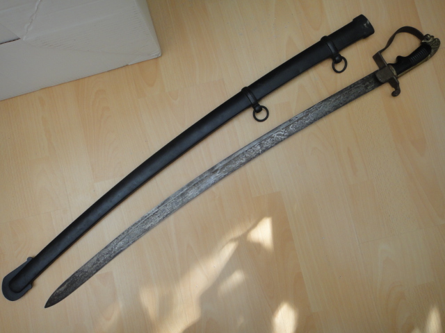 Der Säbel wirkt zumindest auf den Bildern nicht unbedingt wie eine Bastelei. Vom Bauchgefühl her könnte er auch ein für Asien und Südamerika aus vorhandenen Teilen komplettiertes Fantasieprojekte (siehe alfa-Katalog) sein. Auch Theater und Kostümverleih sind denkbar.