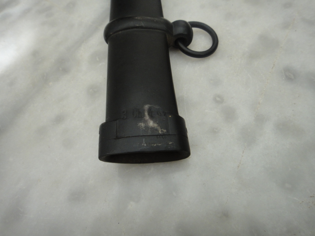 Danke für eure Ausführungen.ich habe das Gafäß nochmal abgelichtet.Griffrücken ist Messing,der rest aus Eisen.Das innere Griffstück ist in der Tat eine Art Kunststoff(bakelit?).Wenn das Stück eh eine zusammengefummeltes Teil ist,könnte man ihn auseinanderbauen.