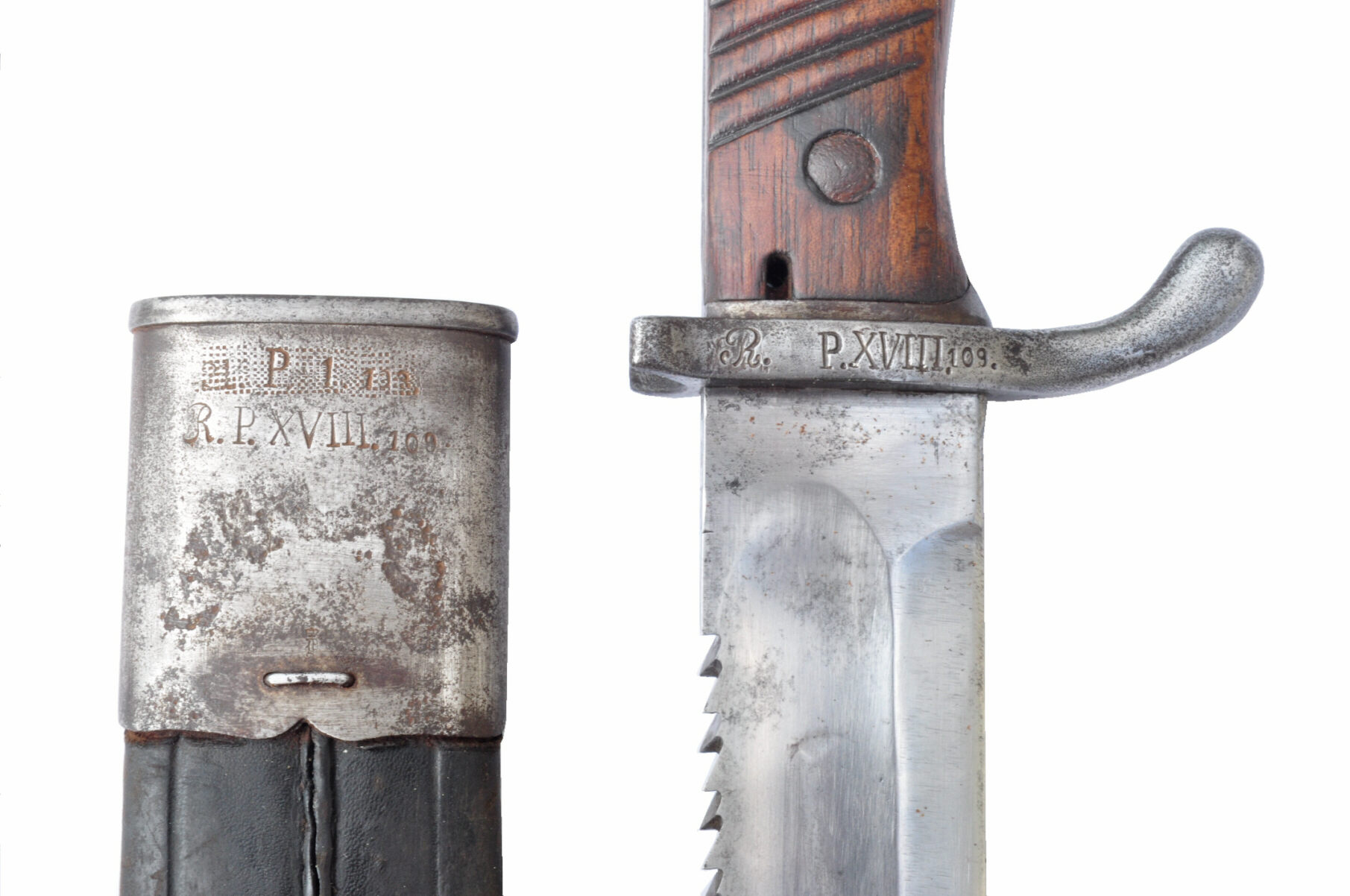 Das Seitengewehr ist mit der Scheide truppenstempelgleich.