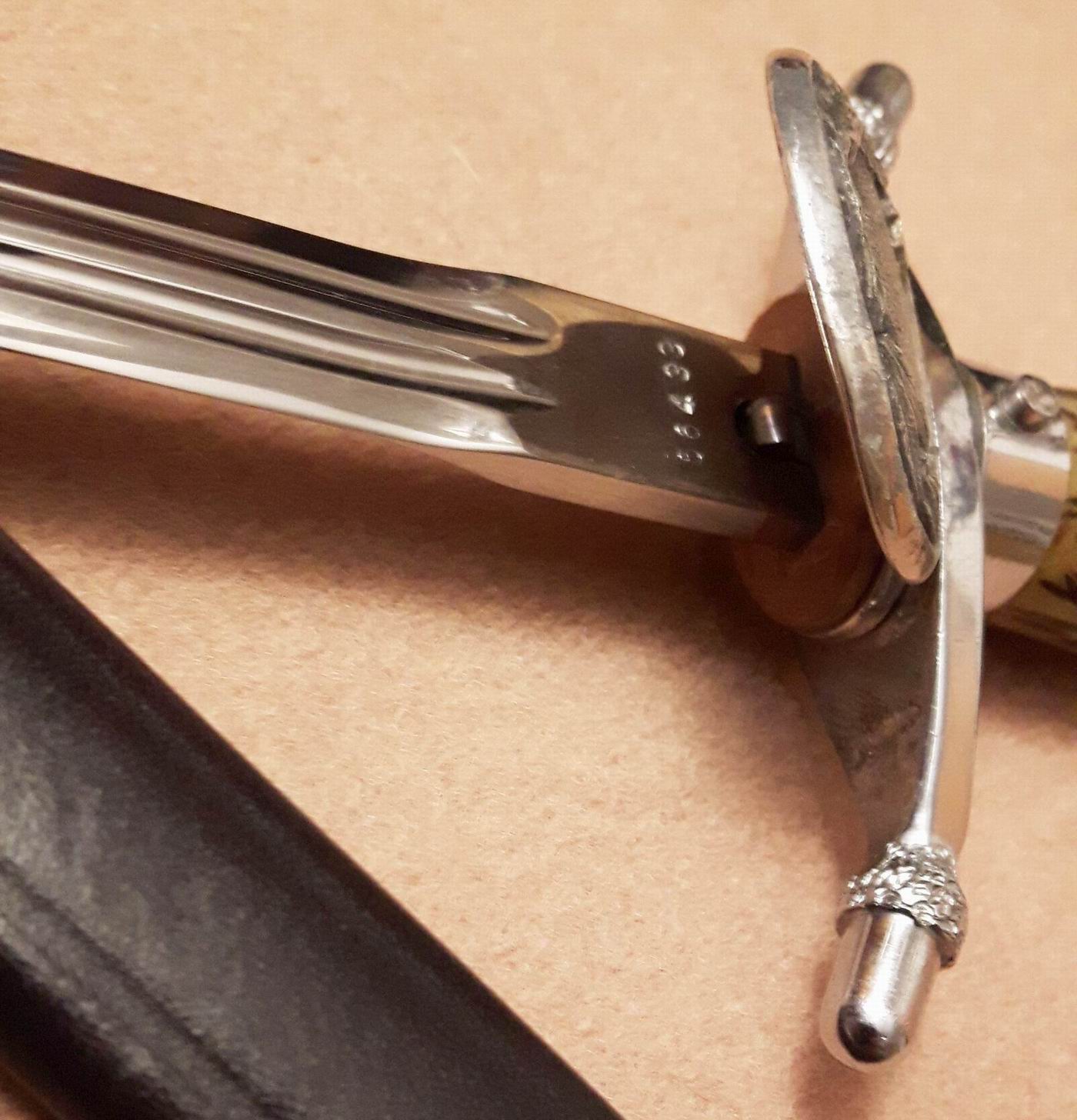 aufgeschoben welches mit eichen- und lorbeerlaub verziert ist. der dolch ist