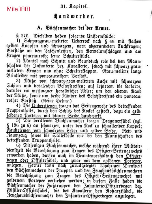 Danke für die Auflistung, die mir aber durchaus bekannt ist. Dennoch: Wenn die Büchsenmacher der Infanterie-Regimenter Faschinenmesser mit längeren Klingen führten, erscheint mir die Deutung als IR 15 durchaus plausibel - oder sehe ich da etwas völlig falsch?