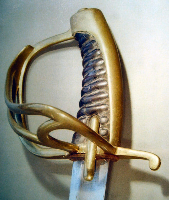 Einschneidige Klinge mit breitem Hohlschliff. Messinggefäß mit beledertem Griff und Messingdrahtwicklung. Eisenscheide mit zwei beweglichen Trageringen und asymmetrischen Schleppblech. Ausstattung der Dragoner und Husaren bis 1843, von 1836 - 1854 der Artillerie. Bestand im Depot 1855: 986 Stk., Bestand bei den Einheiten zu diesem Zeitpunkt unbekannt (Fotos: Felsen).