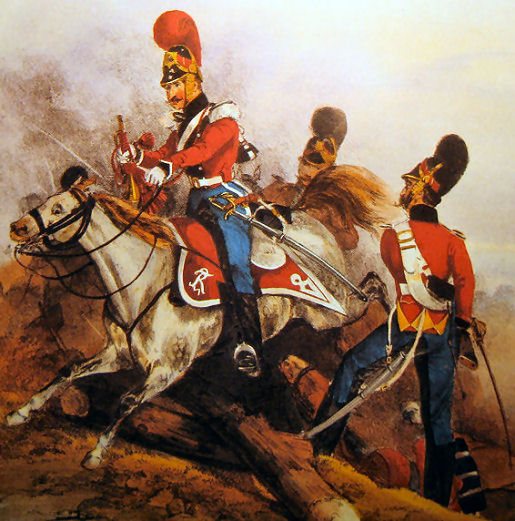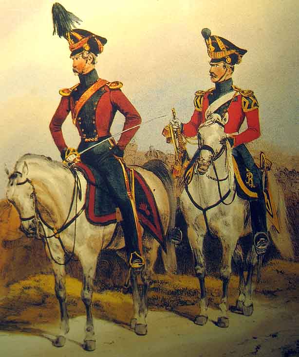 Trompeter und Gemeine des Holsteinischen (Königlich dänischen) Leib-Dragonerregiments um 1840: