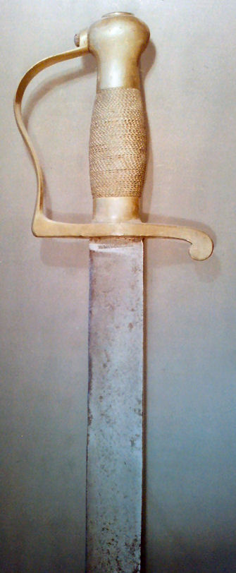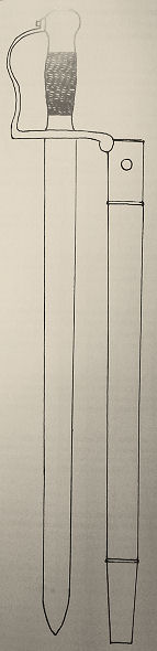 Flache, einschneidige Klinge. Messinggefäß mit angeschraubtem Griffbügel, Griff mit Messingdrahtwicklung. Scheide aus schwarzem Leder mit Messingbeschlägen. Verwendung 1849-1854 bei den Jägern danach bis zur Ausmusterung 1923 bei der Artillerie; ab 1885 auch bei den Fusstruppen des Gendarmeriekorps. Bestand 1854: 3.716 Stk. Länge: 72,5 cm, Klingenbreite: 3,7 cm (Fotos: Felsen).