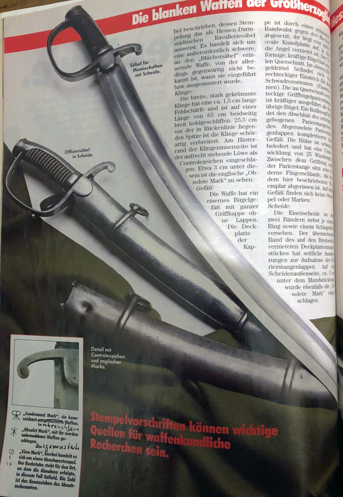 Quelle: Dr. Heinz L. Pape; Die blanken Waffen der Großherzoglich-Hessischen Reiterei im 19. Jahrhundert, Teil 2. Deutsches Waffen-jorunal (DWJ) 1992, Ausgabe 7, Seite 1064-1068.