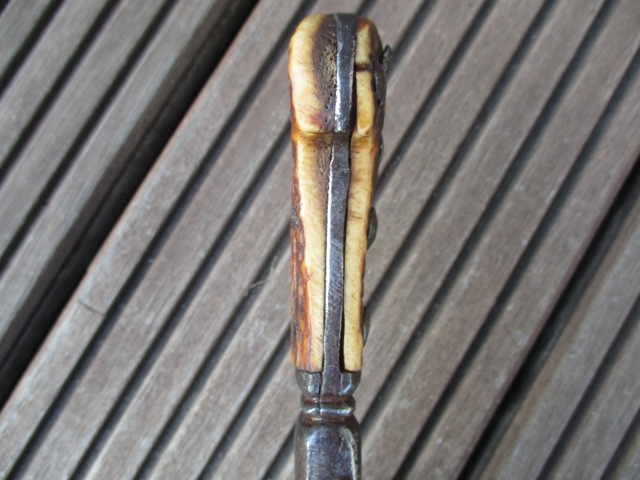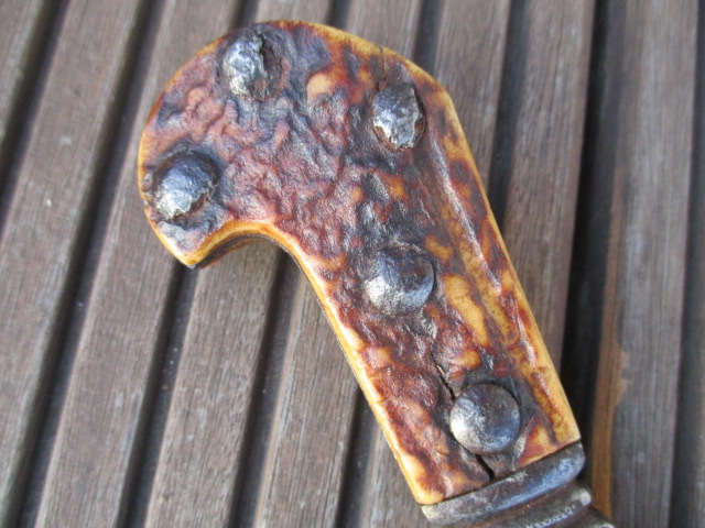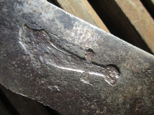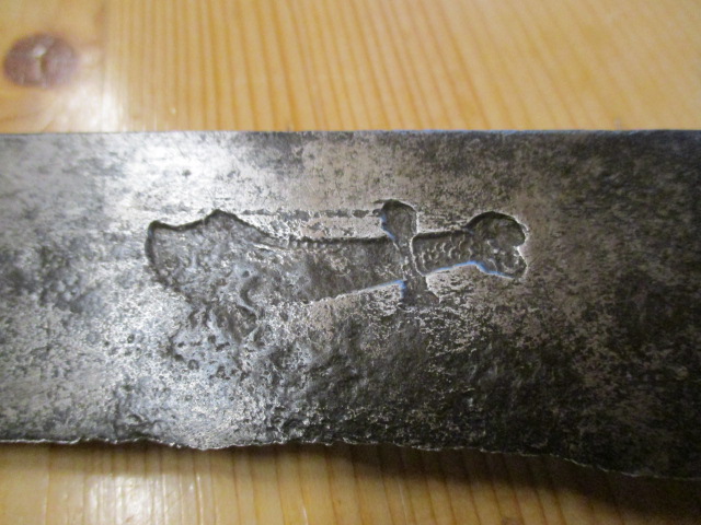 Ob die Klinge hier in Zweitverwendung eingebaut wurde oder dafür gemacht wurde kann ich nicht sagen, jedoch glaube ich nicht, dass sie mal länger war.