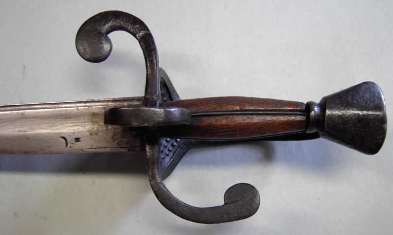 Im Gegensatz zur Masse der hier vorgestellten, größtenteils industriegefertigten Blankwaffen ist das nachfolgend gezeigte Stück vor rund 400 Jahren in reiner Handarbeit entstanden. Trotz seines Alters ist der Säbel immer noch im besten Zustand. Die leicht gebogene Klinge hat beidseitig eine leichte Hohlbahn unf einen Zug, der Ort liegt in der Rückenlinie. Beidseitig zeigt die Klinge eine Christoph Ständler aus München zugeschriebene Marke, welche eine Hand mit einem Malchus oder Falchion zeigt. Die Marke ist im Katalog des Inventars der Waffensammlung des Bernischen Historischen Museums 1929 verzeichnet.