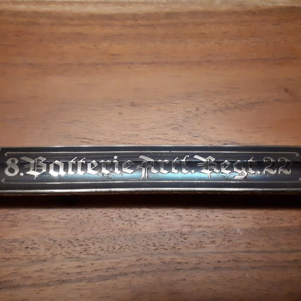 es handelt sich um einen Mannschaftssäbel in Extraausführung aus dem 3. Reich mit Faustriemen der 8. Batterie .