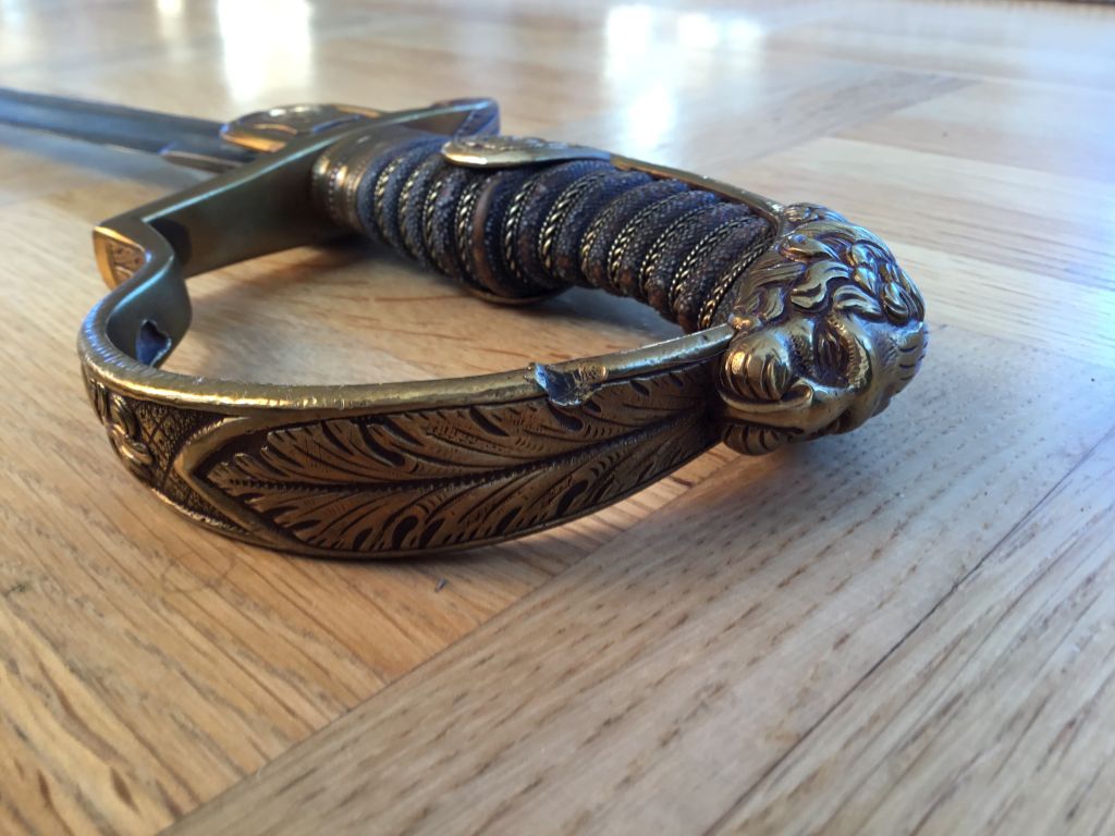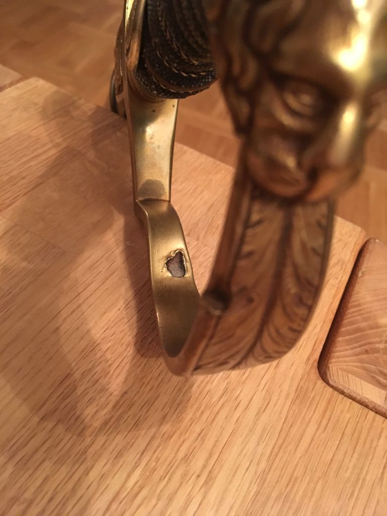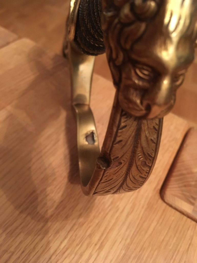 Beim Säbel, aufgrund der Lebensläufe der beiden Offiziere sowieso schon sehr interessant, bitte ich einen Blick auf die Beschädigungen des Griffbügels zu werfen.