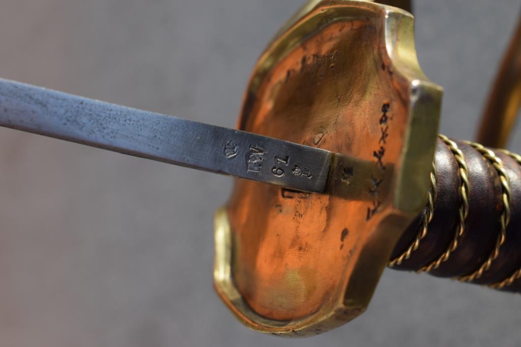 Doch fiel mir auf, dass das Stichblatt vorn nicht, wie gewöhnlich, nach unten gebogen ist. Auch wie von Clouseau erwähnt, ist die Klinge sehr fragwürdig.