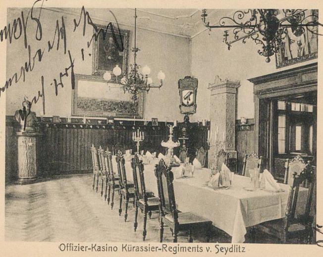 Bei dem Ansehen, welches die Kürassiere und der Trompeter genossen, würde ich eine solche Eigentumserklärung für unnötig erachten. An solchen Stücken hat sich m. E. bis 1945 niemand vergriffen. Zumal die Stücke auch nicht gerade als „Bückware“ dekoriert waren, sondern schon in einer gewissen Höhe hingen.