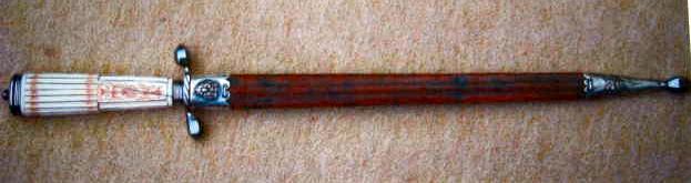 Er hat eine Gesamtlänge von 54 cm. Die Beschläge sind Eisen versilbert.