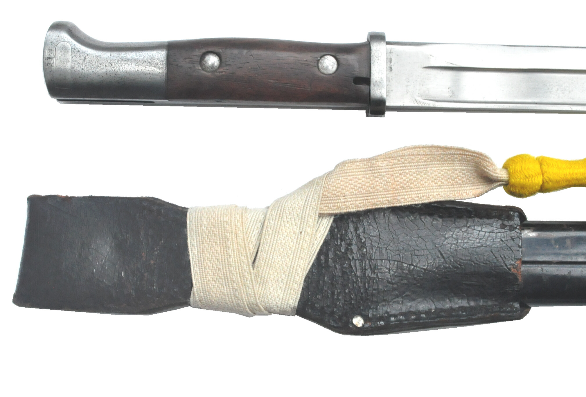 Das Seitengewehr ist in einer privat beschafften Seitengewehrtasche
