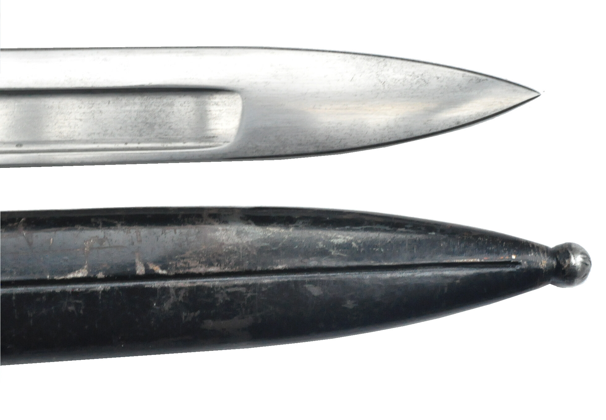 Schwarz lackierte Ersatz - Stahlblechscheide, auf der Rückseite eine
