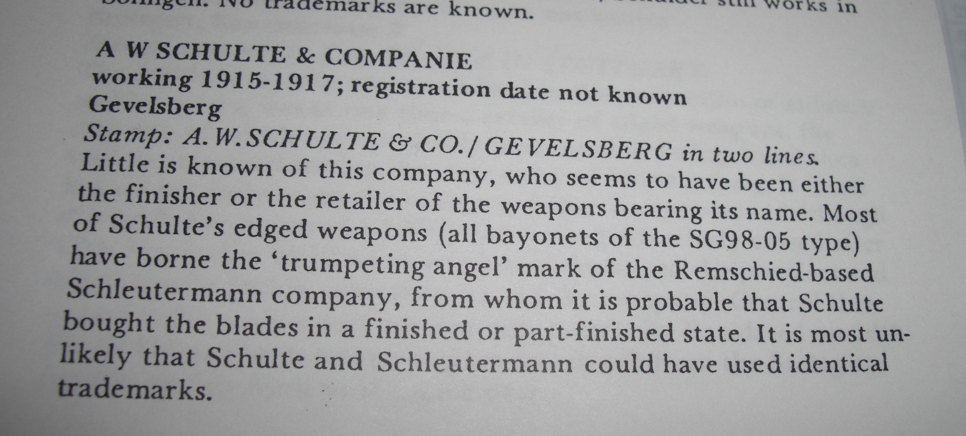 Ja Danke. Die Firmen Schulte & Co. und Schleutermann sind in dem Buch von John Walter (Das Deutsche Bajonett) auf Seite 151 schon etwas beschrieben. Leider bin ich der engl.Sprache nicht so mächtig, das ich den Text perfekt übersetzt bekomme. Mir geht es aber speziell um Stahlblume und das A.W..