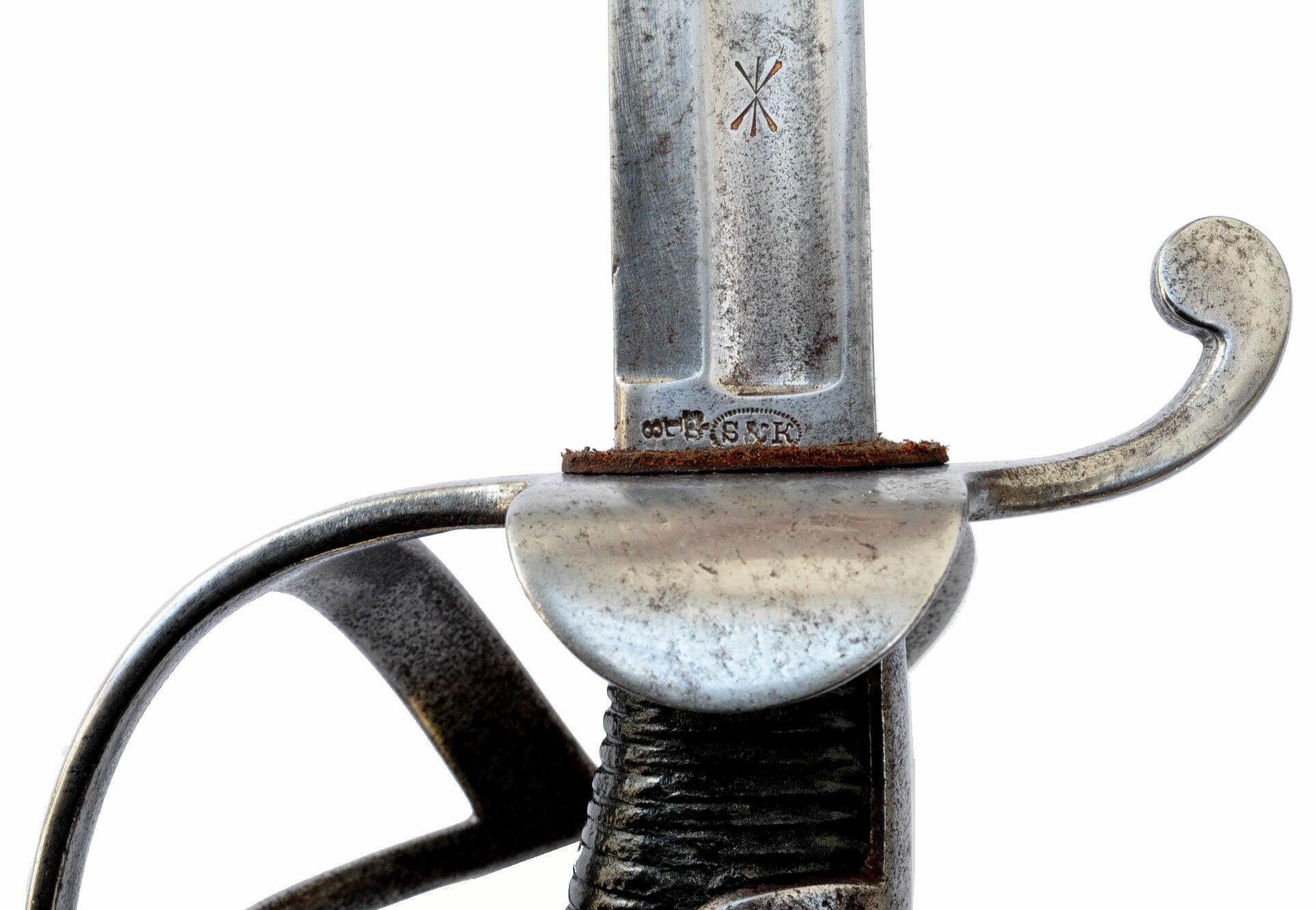 preußischer militärfiskalischer Eigentumstempel FW50 und Revisorstempel auf dem Klingenrücken