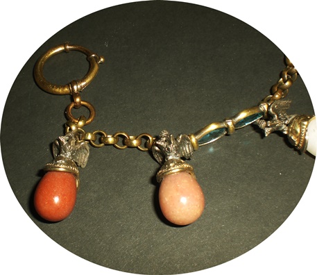 Kettenlänge 28cm, mit mehren Stempeln und Zahlen versehen. Die Steine unter den Helmen, vermutlich auch symbolisch zu sehen. " Glück, Schutz und ähnlich . Das Nest ist aus Silber, innen vergoldet, diente wohl zur Aufnahme einer kleinen " Haarlocke " ?! Auf der Unterseite, ein Name und die Jahreszahl " 1919 " eingraviert. Die blauen,rechteckigen Steine wohl aus Glas ?! Die Uhr habe ich einmal gesondert erworben. Weitere Erkenntnisse und mögliche Deutungen, gerne.