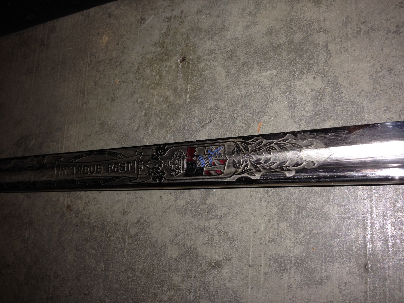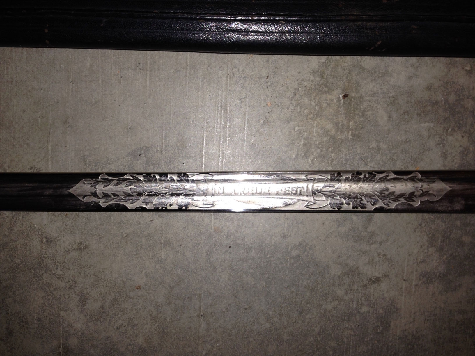 Ich finde kein vergleichbares Stück, da alle Seitengewehre die ich bisher recherchieren konnte nur eine blanke Klinge hatten. Das vorliegende hat beidseitig eine Gravur/Ätzung "In Treue fest!". Ist es möglich, dass es sich um eine Waffe für bessere Anlässe handelt? Die Klinge ist stumpf. Ich würde mich freuen, wenn ich hierzu mehr Infos von den Profis bekommen könnte.