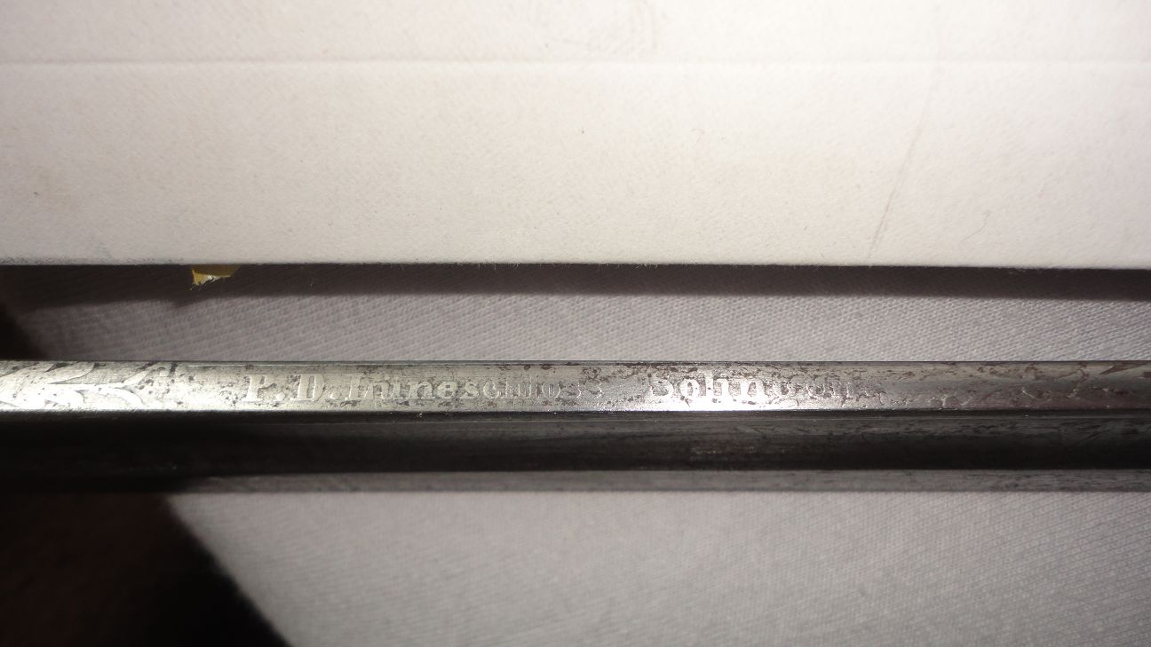 Ich weiß nicht, aus welchem Zeitraum Ihre Mattheis-Säbel stammt, aber der Buchstabentyp ist genau der gleiche wie auf meinem Säbel.