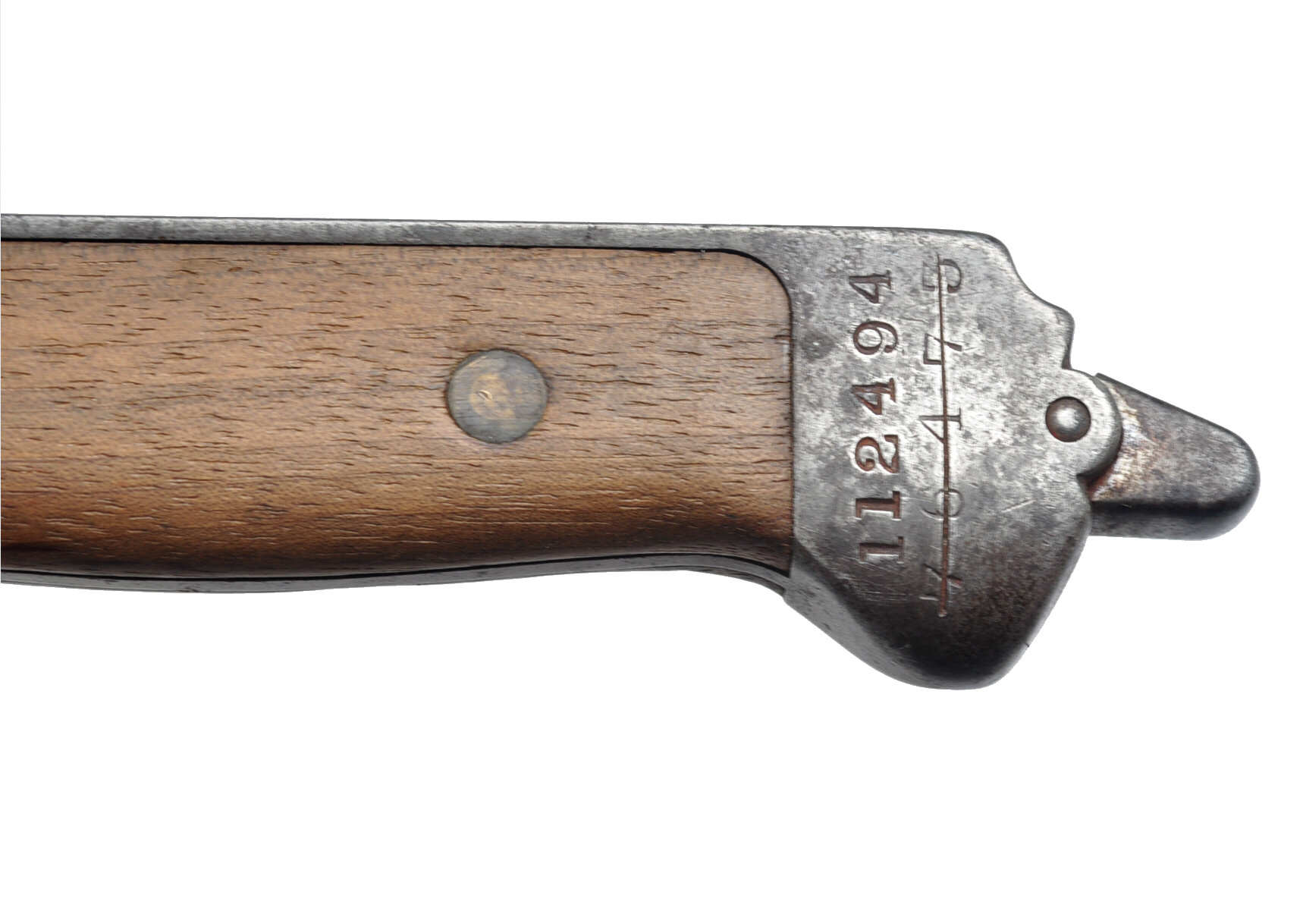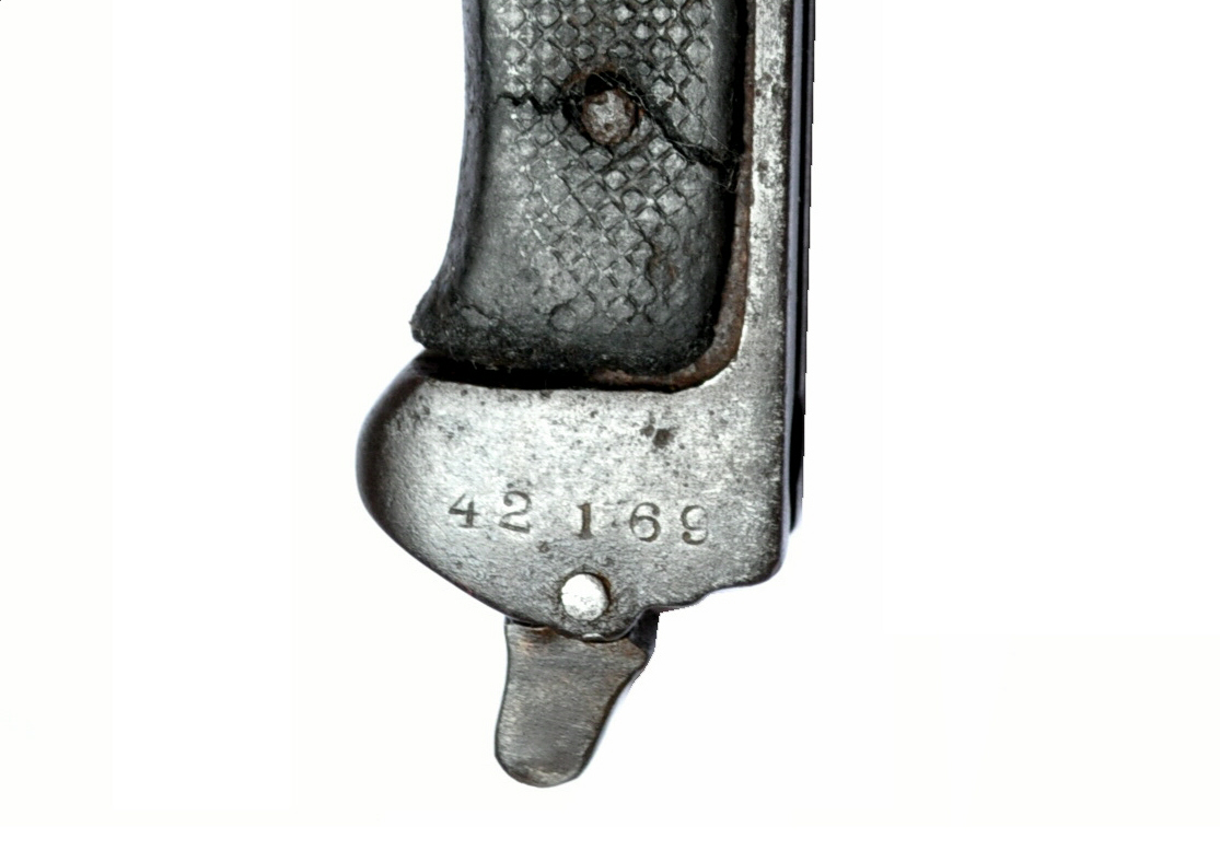 Seriennummer 112494 und eine gestrichene Nummer Griffkopf links