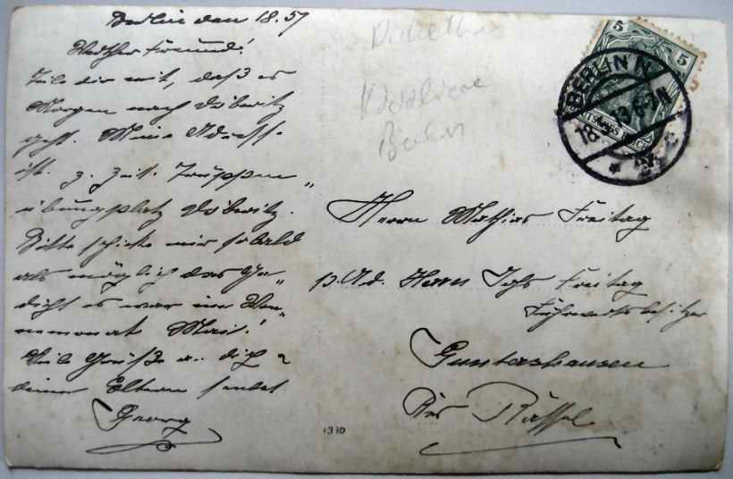 "Werther Freund!...Meine Anschrift ist z. Zeit Truppenübungsplatz Döberitz. Bitte schicke mir sobald als möglich das Gedicht ...'im Wonnemonat Mai'..."