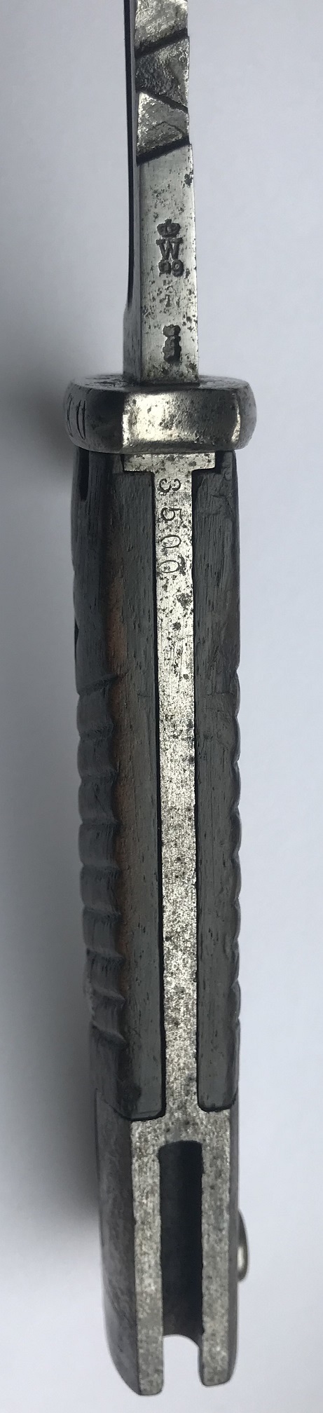 Anbei einmal ein solches Versuchs-Seitengewehr. W99 (leider schlecht zu erkennen), Nummer 4335 und Truppenstempel der Garde-Schützen.