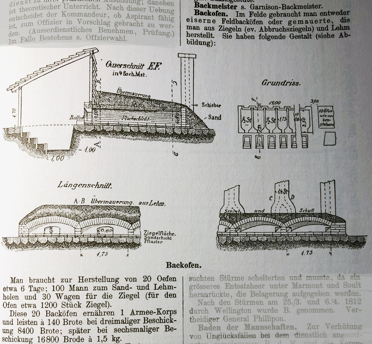 Hier einmal eine stationäre Backanlage aus Justus Scheibert [Hg]; Illustriertes Deutsches-Militär-Lexikon, Berlin 1897.