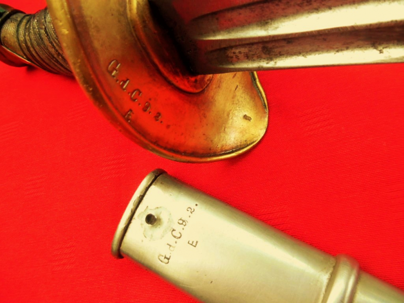 Duplizität der Dinge! Es ist ein zweiter KOD 54 aufgetaucht mit einem Truppenstempel der GdC (!), zwei Jahreszahlen auf der Klinge (schräg geschlagen) und einem E.