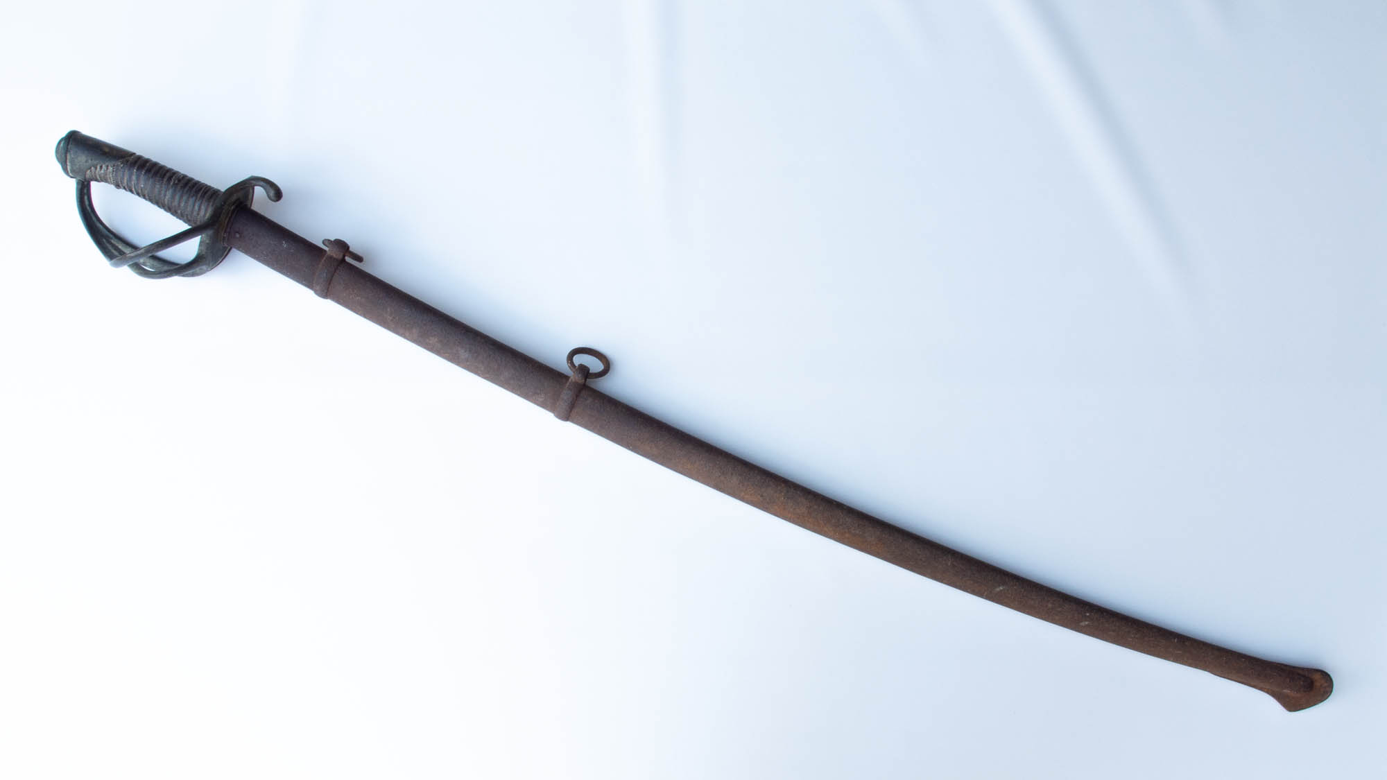 Beim Kellerausmisten im Elternhaus tauchten drei Säbel auf, die ich in letzter Sekunde zum Glück noch vor dem Schrotthändler in Sicherheit bringen konnte. Gesammelt hatte sie vermutlich mein geschichtlich interessierter Opa. Als Kind hingen sie – optisch in einem wesentlich besseren Zustand – sogar eine Weile bei mir an der Wand. Über dem Bett. Irgendwie an Nägeln. Darf ich nicht drüber nachdenken. Dann dienten sie ein paar Jahre als Requisiten einer schulischen Theater-AG. Darf man auch nicht drüber nachdenken. Dort jedenfalls ging eine der Scheiden verloren. Die Säbel wanderten danach in den feuchten Keller, was ihnen augenscheinlich nicht besonders gut bekam. Wobei die Scheiden immer schon so aussahen; nur die Klingen haben mehr oder weniger leiden müssen.