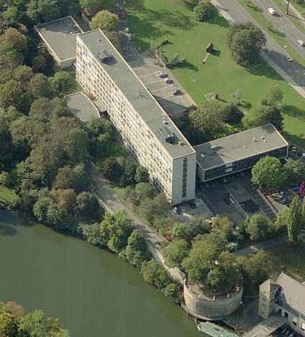 Regierungspräsidium Kassel 2008. Es steht an der selben Stelle; auf allen Bildern ist der flache, runde Turm am Fuldaufer, das Rondell, zu sehen; das letzte Relikt der landgräflichen Stadtschlossbefestigung.