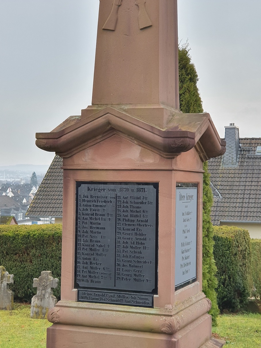Anbei Bilder des (alten) Kriegerdenkmals auf dem alten Friedhof in Elz, Hessen.