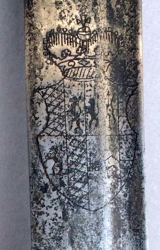 Der vorgestellte Säbel (ohne Scheide) dürfte, wenn man das Monogramm am Knauf nach Flämig, Monogramme auf Münzen und Medaillen auflöst, dem Bistum Münster unter Fürstbischof Clemens August von Bayern, 1719-1761 zuzuordnen sein.