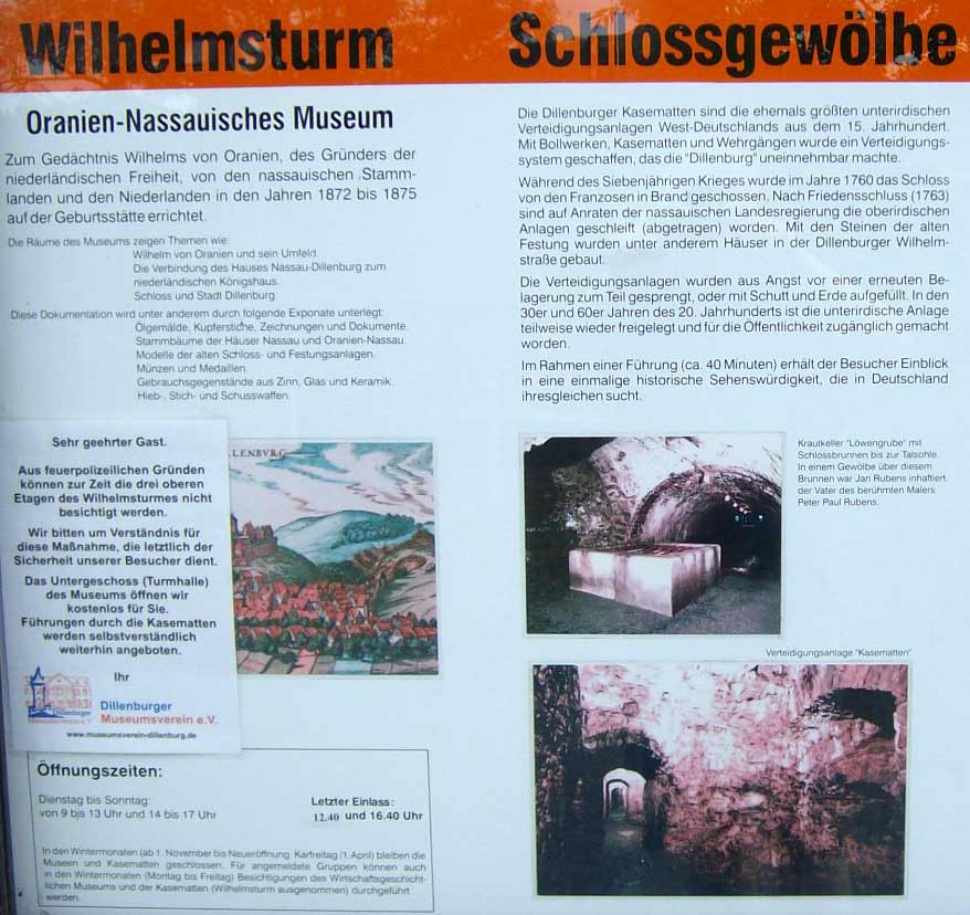 In den Jahren 1872-75 erfolgte auf dem Schloßberg der Bau des Wilhelmsturm zum Andenken an Wilhelm I. Oranien. Der Turm beherbergt inzwischen ein Museum mit Schwerpunkt Nassau und Oranien-Nassau.