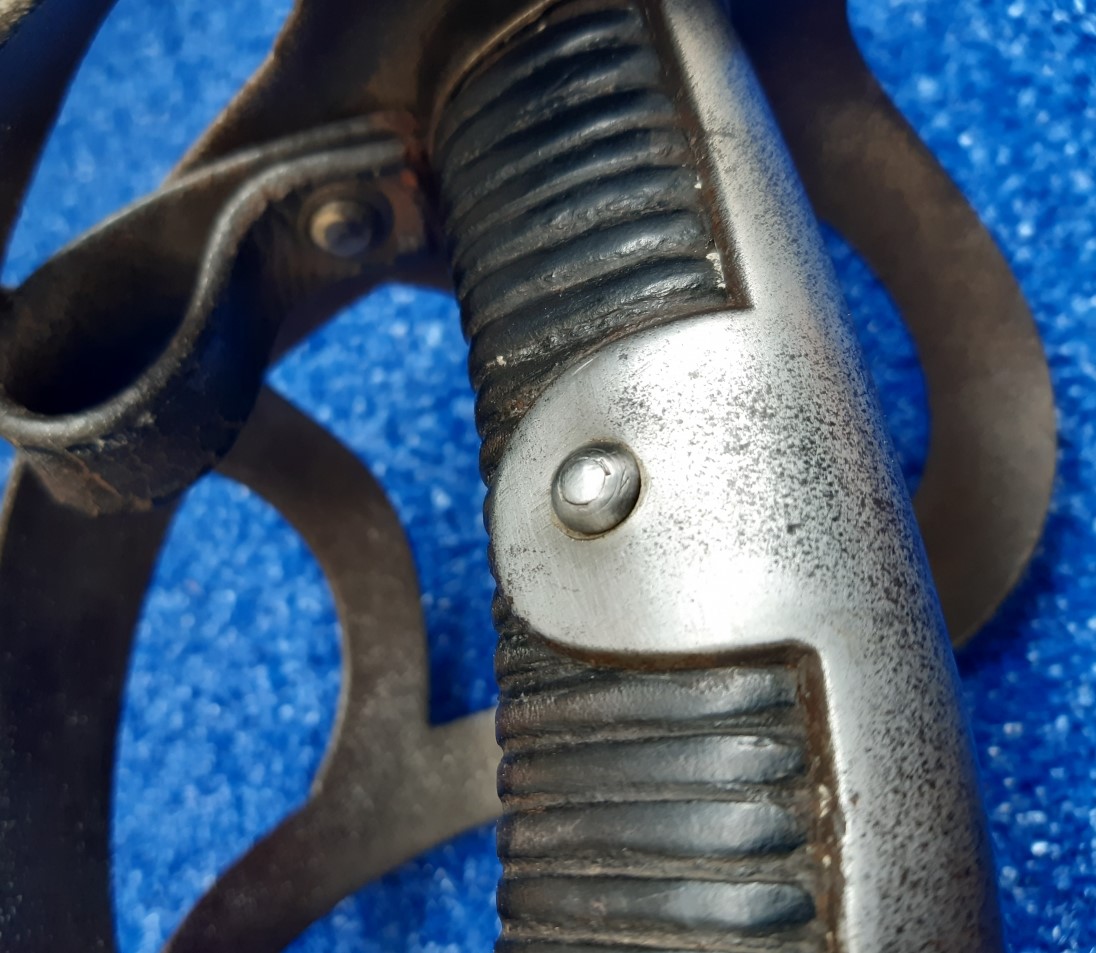 Eher nein. Es gibt im Weltkrieg einige improvisierte Verschraubungen anstelle von Vernietungen beim Offizierdegen, aber hier erschließt sich mir der Sinn dieser Maßnahme nicht wirklich. Vor allem, da der Griffkappenlappen noch mit einem Querniet gesichert waren.
