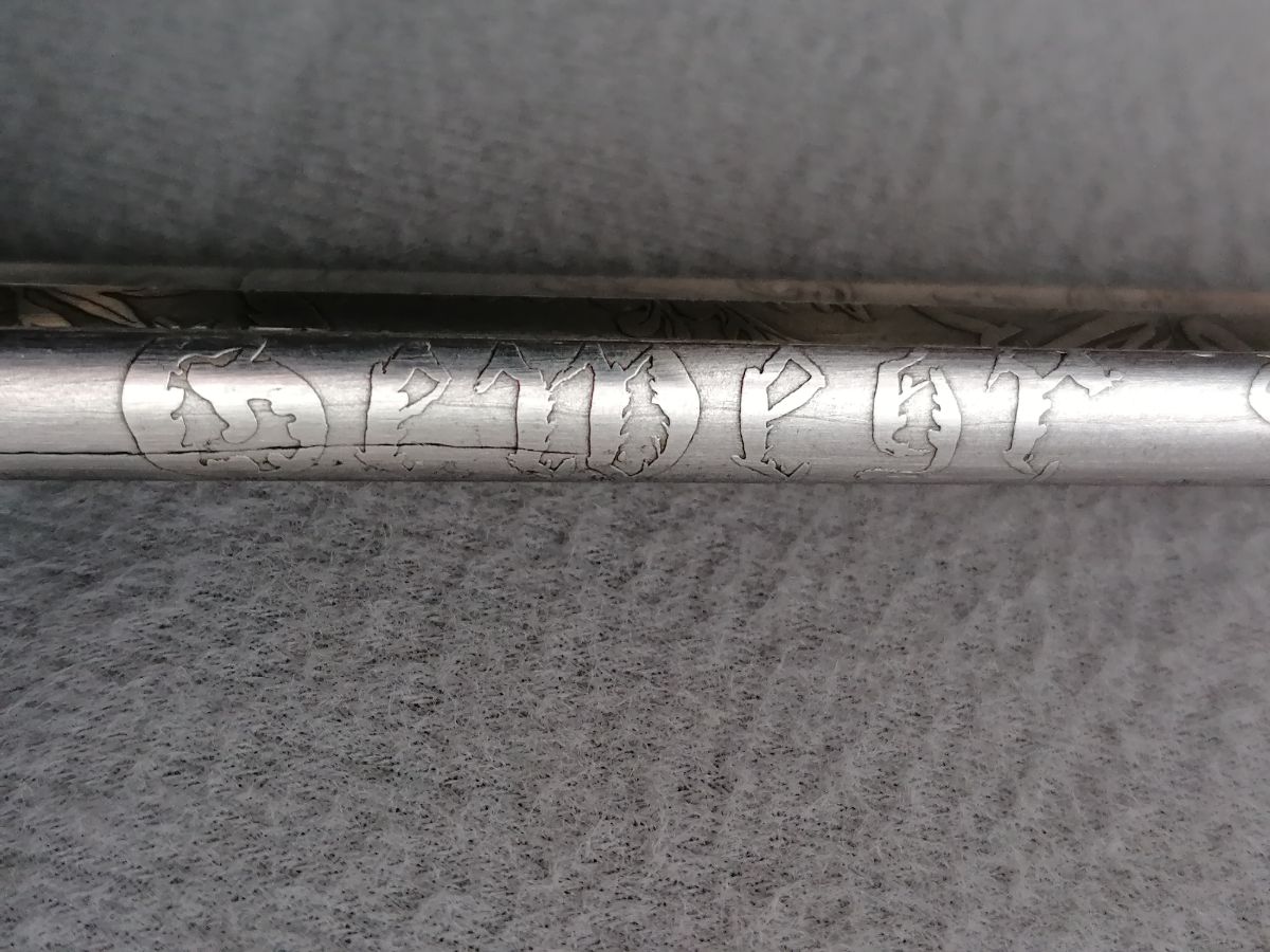 Leider kann man auf den Fotos kaum etwas von der Ätzung erkennen. Wenn es bei Tageslicht möglich ist, bitte bessere Fotos nachreichen.