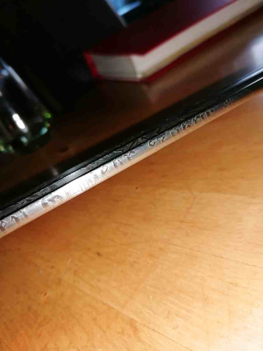 Leider kann man auf den Fotos kaum etwas von der Ätzung erkennen. Wenn es bei Tageslicht möglich ist, bitte bessere Fotos nachreichen.