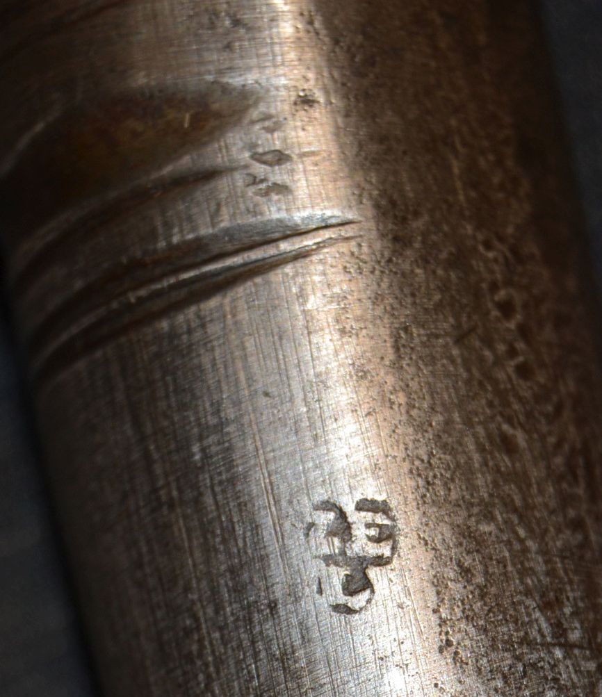 Die Waffe hat eine Messinggarnitur. Ob der Ladestock zugehörig ist kann ich nicht beurteilen. Auffällig ist die Federklinke an der Mündung zur Arretierung des Bajonetts. Fast alle Teile sind gestempelt. Am häufigsten ist hierbei die Kennzeichnung ITK vorhanden - nämlich auf allen Ringen, dem Abzugsbügel sowie dem Rohr auf Höhe des Pulversacks. Der Lauf selbst wirkt deutlich älter als der Rest der Waffe. Auch hat es den Anschein, als wäre der mal in einem Gewehr ohne Laufhalteringe verbaut gewesen. Ich weiß, dass es sich um ein bayer. Gewehr handelt das sehr wahrscheinlich der Land- bzw. Bürgerwehr zuzuordnen ist.