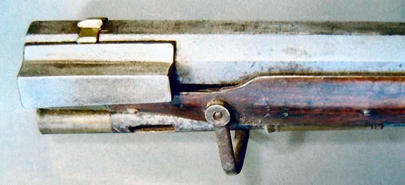 Kaliber 23 / 15,5 mm, Achtkantiger Lauf, Visier mit Klappen für 100 und 200 Schritt. Kastenförmige Aufnahme für den