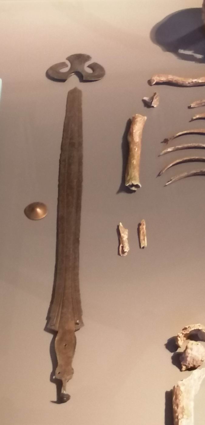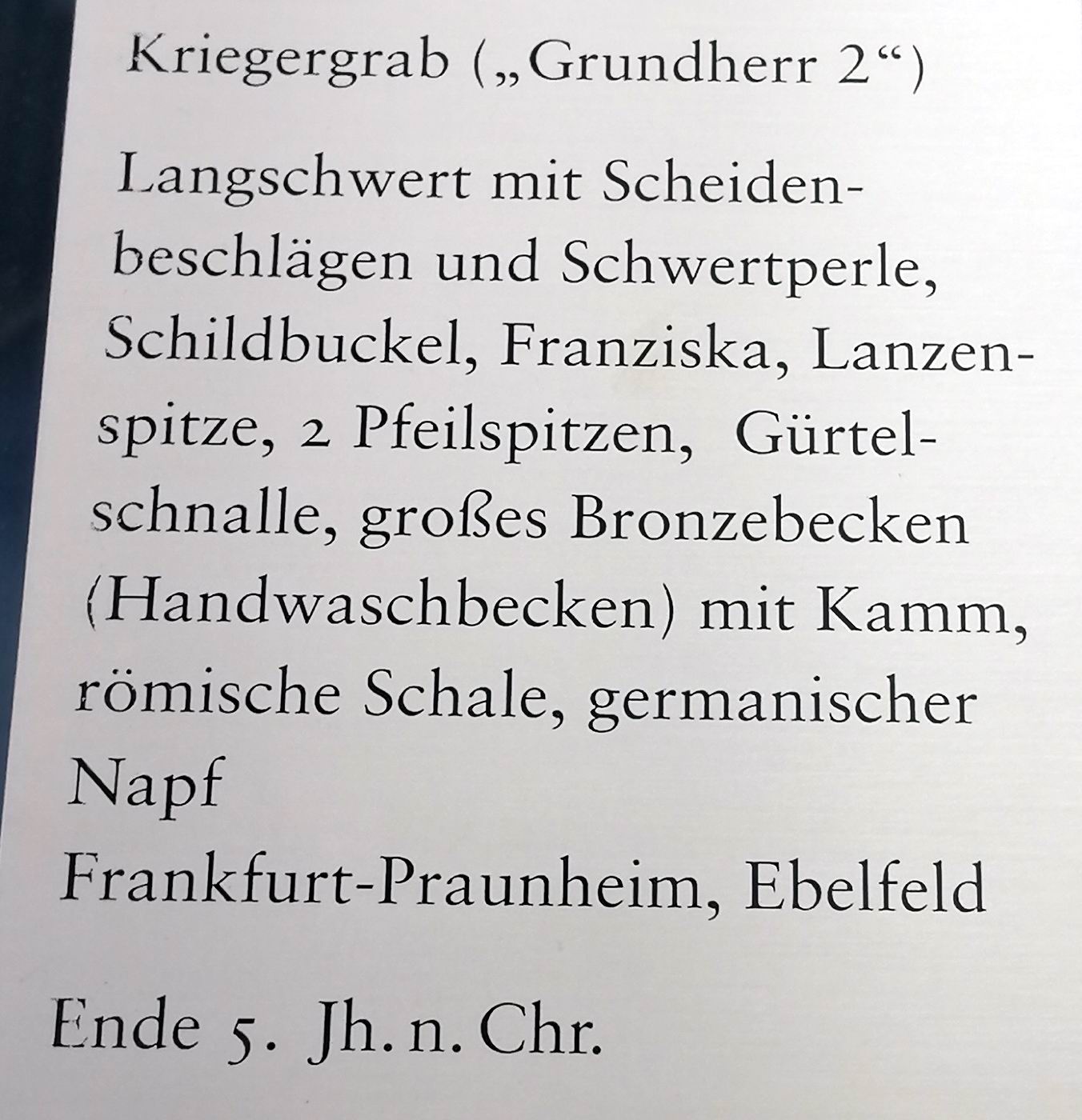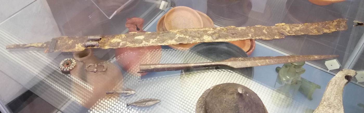 Archäologische Museum Frankfurt im Karmeliterkloster. Neben archäologische Funde des Alltags und Schmuck ist auch die zeitgenössische Bewaffnung Thema der Ausstellung.