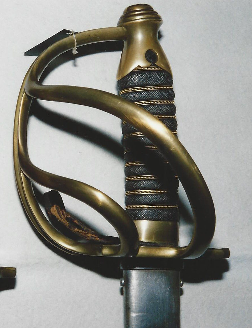 "....Hülse nach Offizierstradition mit Fischhaut überzogen. Die Umwicklung ist nicht mit Silberdrähten sondern mit "umsponnenen" Messingdrähten ausgeführt".