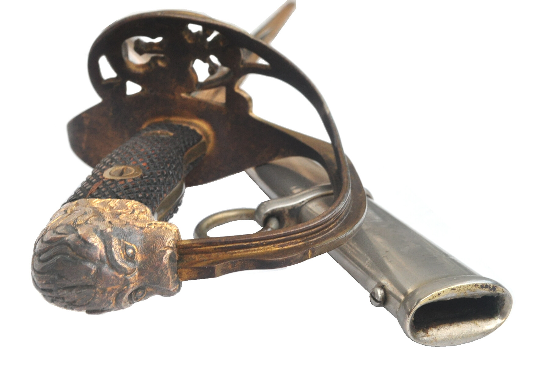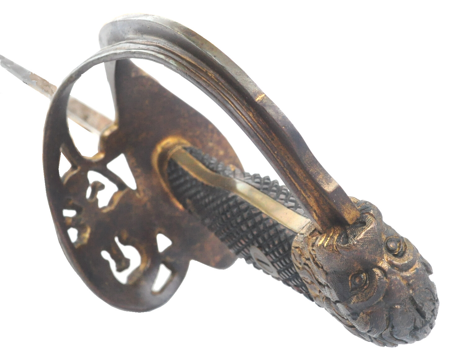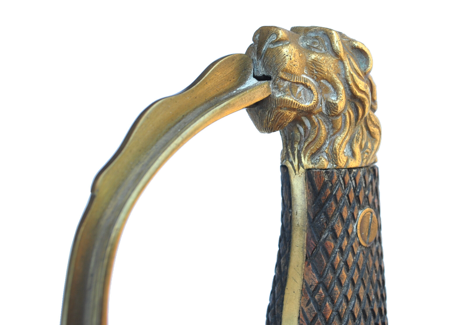 Griffkopf aus 2 Teilen zusammengefügt in Löwenkopfform, oben vernietet